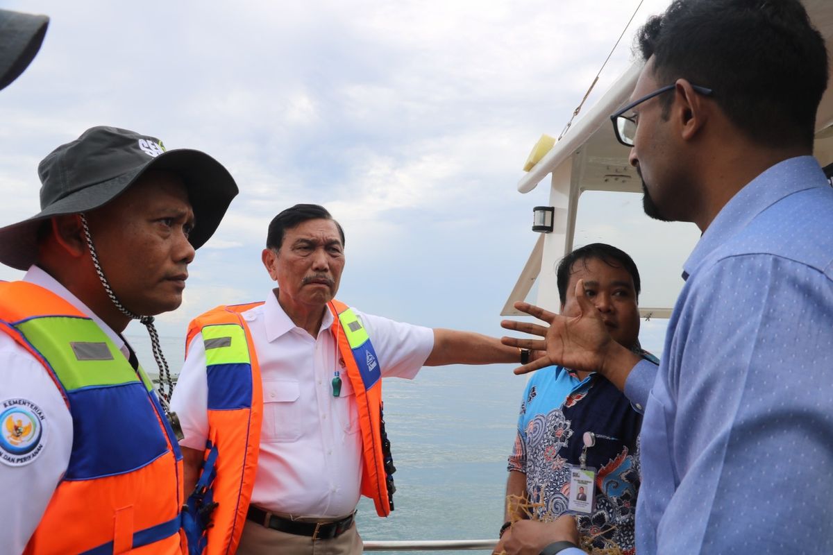 BULELENG, KOMPAS.com - Menteri Koordinator Bidang Kemaritiman dan Investasi Indonesia, Luhut Binsar Pandjaitan meninjau proyek percobaan budidaya rumput laut di Desa Patas, Kecamatan Gerokgak, Kabupaten Buleleng, Provinsi Bali, Jumat (28/4/2023).