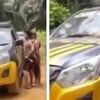 Dalam aksinya tersebut, pria WNA ini juga mematahkan tiang komando lalu memukul kap mobil hingga penyok.