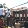Mereka berteriak dan mendorong pintu gerbang kantor Satpol PP sampai terlepas.